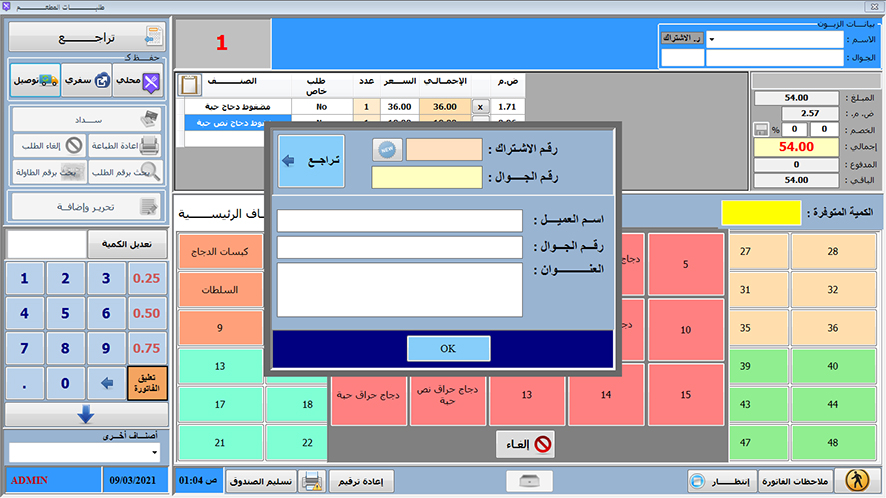• تم تصميم واجهة الكاشير بطريقة مناسبة للعمل بشاشات اللمس مما يضمن سرعة في الأداء ودقة في الطلبات