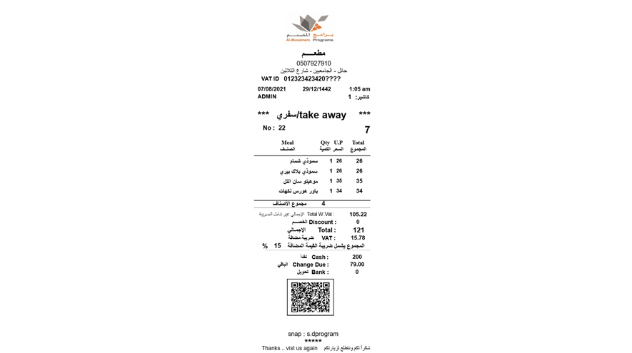 • يمكن ربط اكثر من جهاز كاشير داخل المطعم الواحد .