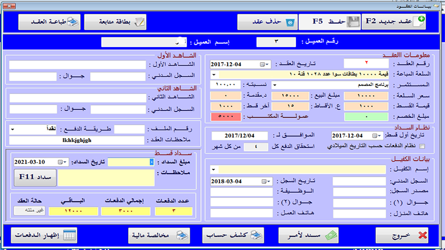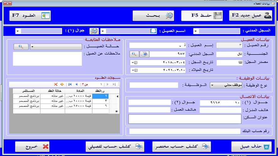 • سهولة تسجيل بيانات العملاء وطباعة العقود .